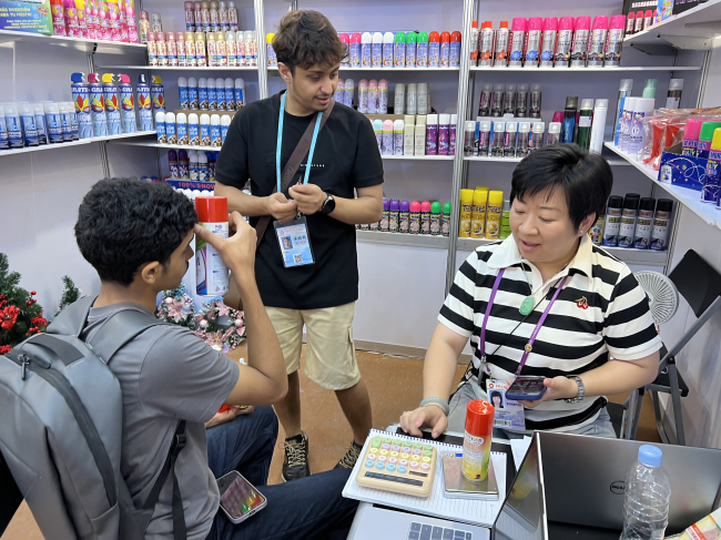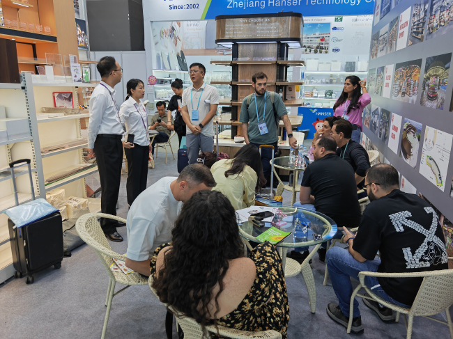 In the home furnishings zone, our "CHAMPION" shelf design and one-stop service secured repeat orders from long-standing German clients with a 1.5-fold value increase, following successful collaborations with Indonesian and Philippine partners at the past two fairs.Additionally, we reached supermarket shelf cooperation intentions with Peruvian and Venezuelan buyers. In the Festive Products Zone, our upgraded snow spray cans, certified to European standards, secured orders from Iran and Germany. The "Diamond" UV-printed insulated bottles drew concentrated attention across Middle Eastern and Southeast Asian markets, sealing confirmed deals during the event.